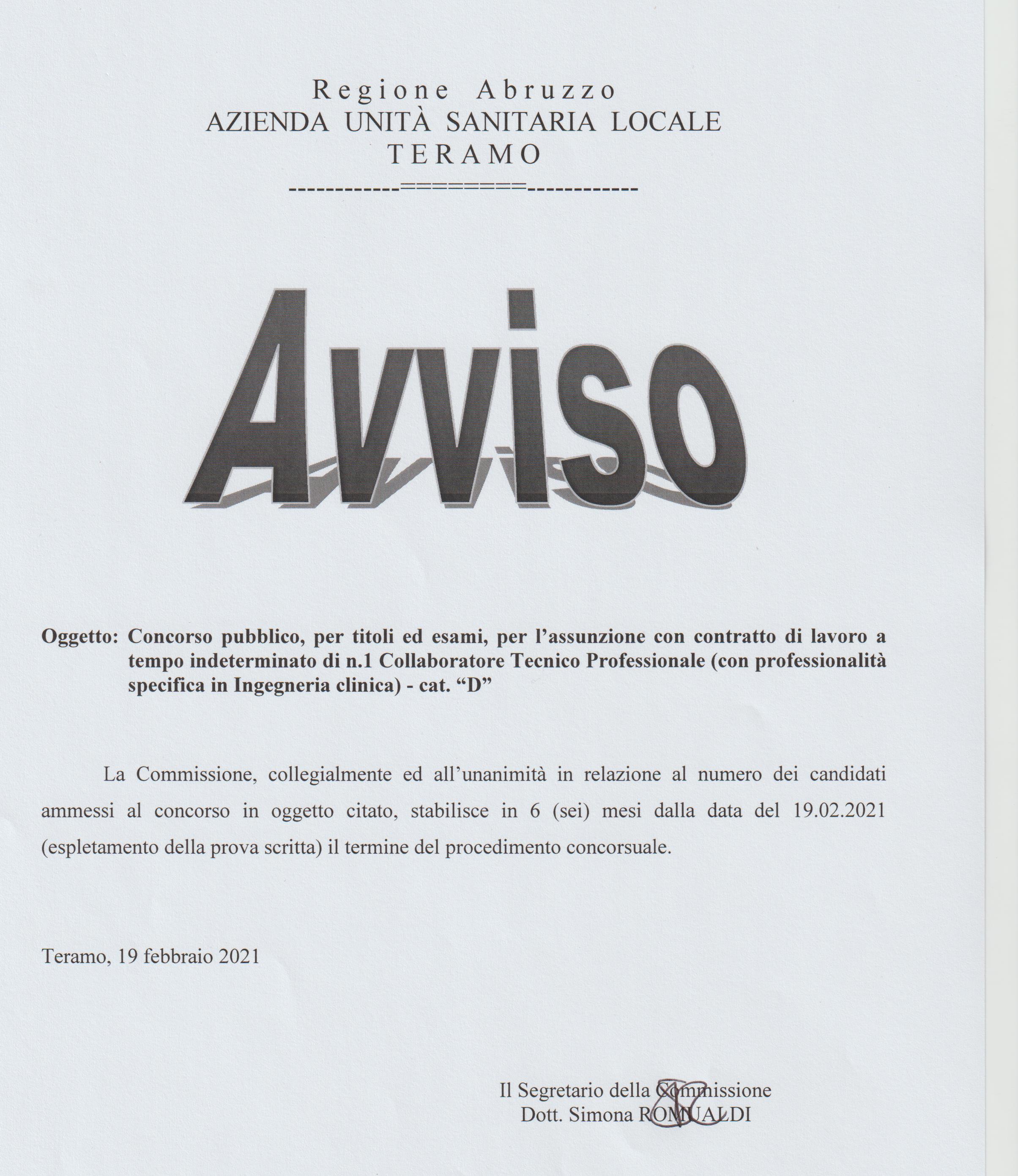 Avviso termine procedura